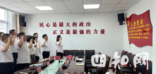 (支部书记杨琦同志带领全体党员重温入党誓词)