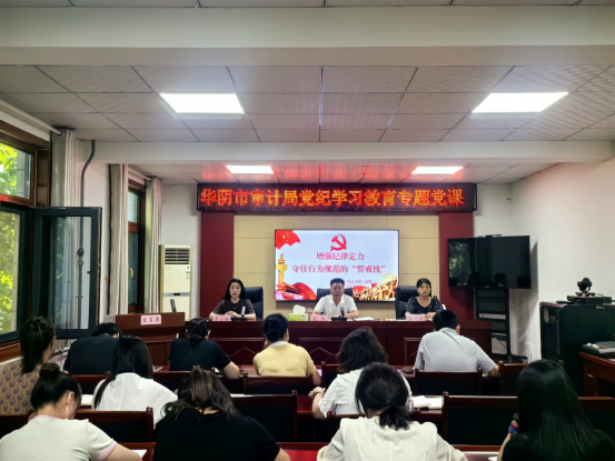 为推动党纪学习教育走深走实,6月12日,华阴市审计局党组织书记、局长高峰同志以“增强纪律定力 守住行为规范的警戒线”为题给全体党员干部讲一堂党纪学习教育专题党课。